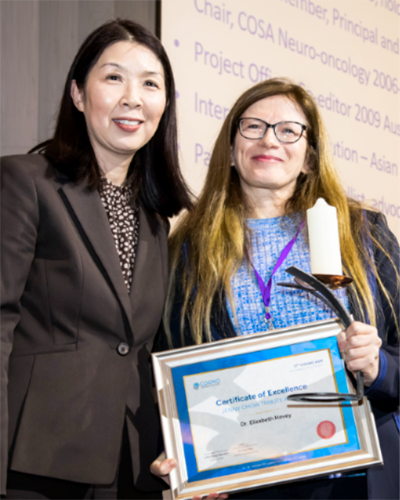 The inaugural Jenny Chow Award was presented at the 2025 ASM. This special award acknowledges an individual who has made a sustained and significant contribution to COGNO and the neuro-oncology community in Australasia, and who has demonstrated community spirit and been an “unsung hero” to their peers. The recipient of the 2025 award was Associate Professor Elizabeth Hovey, Medical Oncologist, Prince of Wales Hospital and Conjoint Associate Professor, University of New South Wales.