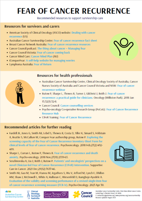 - Understanding where to refer and resources to provide to support best practice in managing fear of cancer recurrence